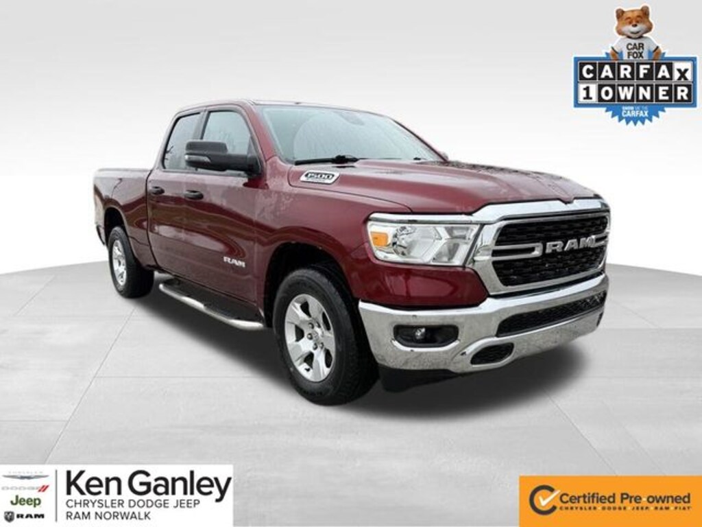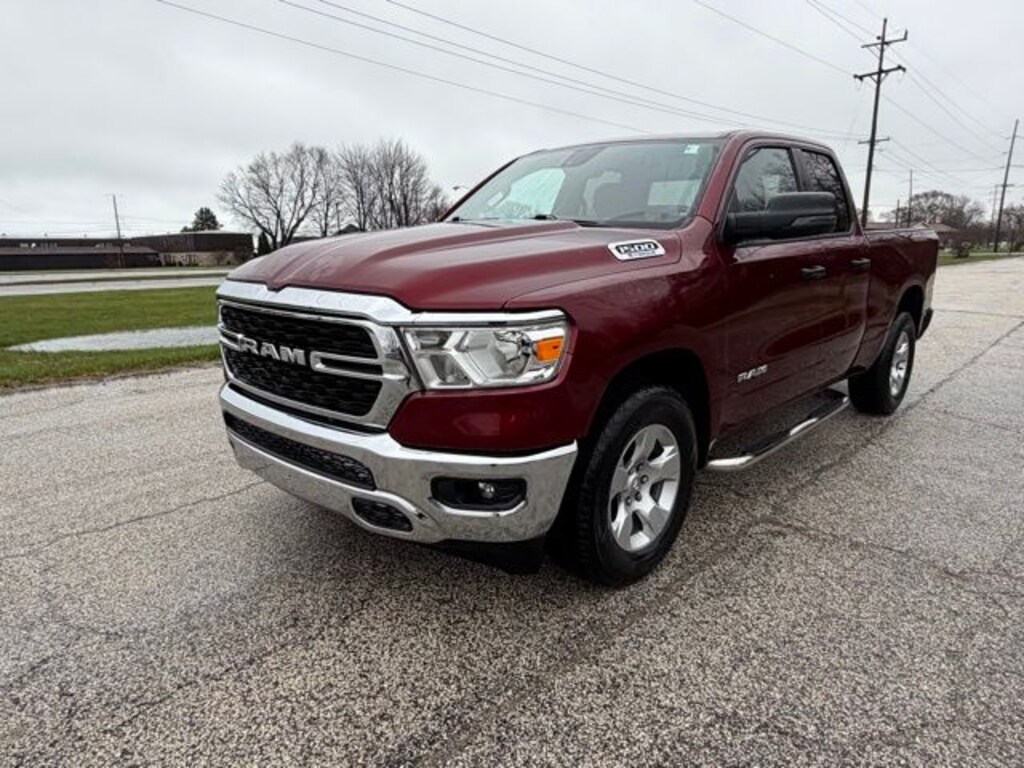 Certified. 2023 Delmonico Red Pearlcoat 4D Quad Cab Ram 1500 Big Horn/Lone Star 3.6L V6 24V VVT 4WD 4G LTE Wi-Fi Hot Spot, 8.4" Touchscreen Display, Apple CarPlay, Auto-Dimming Exterior Driver Mirror, Auto-Dimming Rear-View Mirror, Big Horn Badge, Big Horn Level 1 Equipment Group, Black Exterior Mirrors, Black Premium Power Mirrors, Bluetooth Handsfree Phone & Audio, Class IV Receiver Hitch, Connectivity - US/Canada, Electric Shift-On-Demand Transfer Case, Exterior Mirrors Courtesy Lamps, Exterior Mirrors w/Heating Element, Exterior Mirrors w/Supplemental Signals, For Details, Visit DriveUconnect.com, For More Info, Call 800-643-2112, Front Fog Lamps, Glove Box Lamp, Google Android Auto, GPS Antenna Input, Heated Front Seats, Heated Steering Wheel, Integrated Center Stack Radio, Passenger Sun Visor w/Illuminated Mirror, Power-Folding Mirrors, Quick Order Package 23Z Big Horn, Radio: Uconnect 5 W w/8.4" Display, Rear Dome w/On/Off Switch Lamp, Rear Power Sliding Window, Rear Window Defroster, SiriusXM Satellite Radio, USB Host Flip.