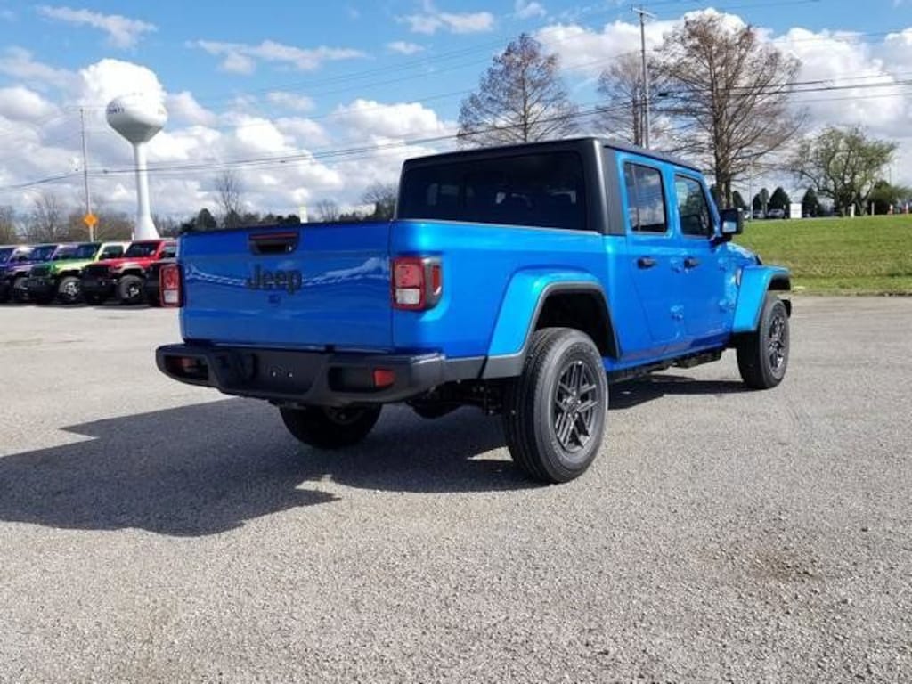 $4,624 off MSRP! Dealer Discount of $3,624 off MSRP Hydro Blue Pearlcoat 3.6L V6 24V VVT 17/22 City/Highway MPG Jeep Recent Arrival! 4WD Gladiator Sport S 8-Speed Automatic Price includes: $1000 - 2026 National Retail Bonus Cash . Exp. 04/30/2026