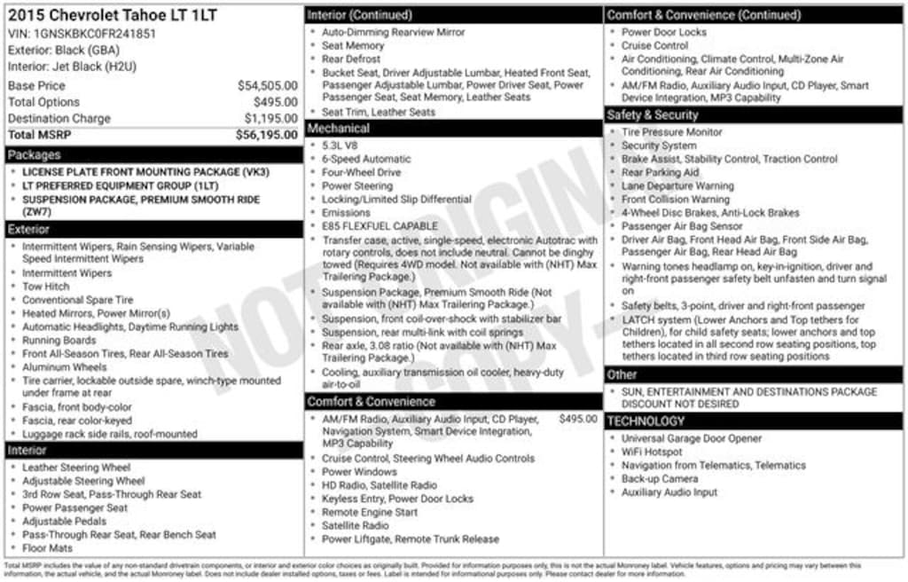 2015 Black 4D Sport Utility Chevrolet Tahoe LT EcoTec3 5.3L V8 4WD
