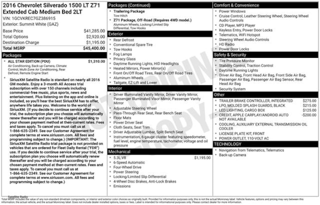 2016 Summit White 4D Double Cab Chevrolet Silverado 1500 LT EcoTec3 5.3L V8 4WD Silverado 1500 LT LT2, 4D Double Cab, EcoTec3 5.3L V8, 6-Speed Automatic Electronic with Overdrive, 4WD, Summit White, Black Cloth.