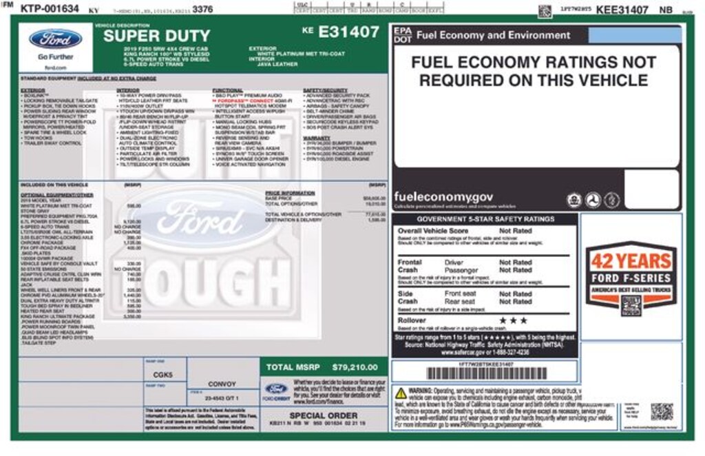 2019 White 4D Crew Cab Ford F-250SD King Ranch Power Stroke 6.7L V8 DI 32V OHV Turbodiesel 4WD BLIS Blind Spot Information System, GVWR: 10,000 lb Payload Package, King Ranch Ultimate Package, Multi-Contour Seats, Navigation System, Power-Deployable Running Boards, Quad Beam LED Headlamps & LED Taillamps, Tailgate Step & Handle, Twin Panel Power Moonroof.
