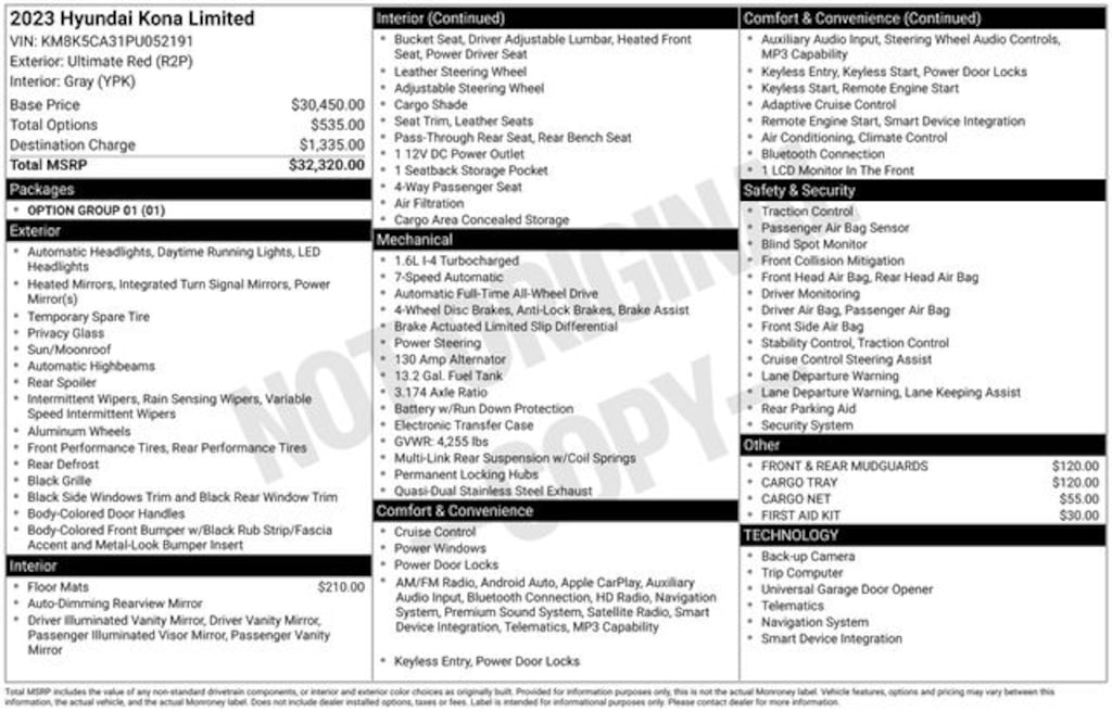 Discover the ultimate driving experience with this exceptional 2023 Hyundai Kona Limited. Boasting a sleek and stylish exterior in a vibrant Red hue, this compact SUV is sure to turn heads wherever you go. Under the hood, you'll find a powerful I4 engine paired with a smooth-shifting Shiftronic AWD transmission, delivering an impressive blend of performance and efficiency.