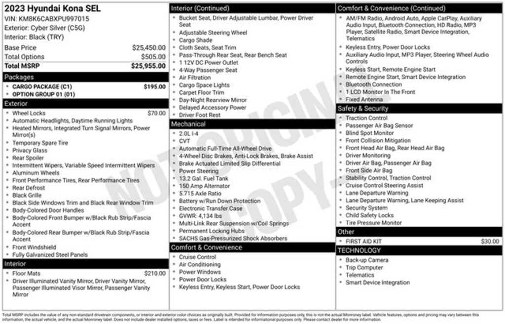 * The advertised price does not include sales tax, vehicle registration fees, other fees required by law, finance charges and any documentation charges. A negotiable administration fee, up to $115, may be added to the price of the vehicle.