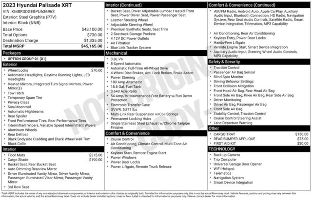 Certified. 2023 Steel Graphite 4D Sport Utility Hyundai Palisade XRT V6 AWD Navigation System, Option Group 01.