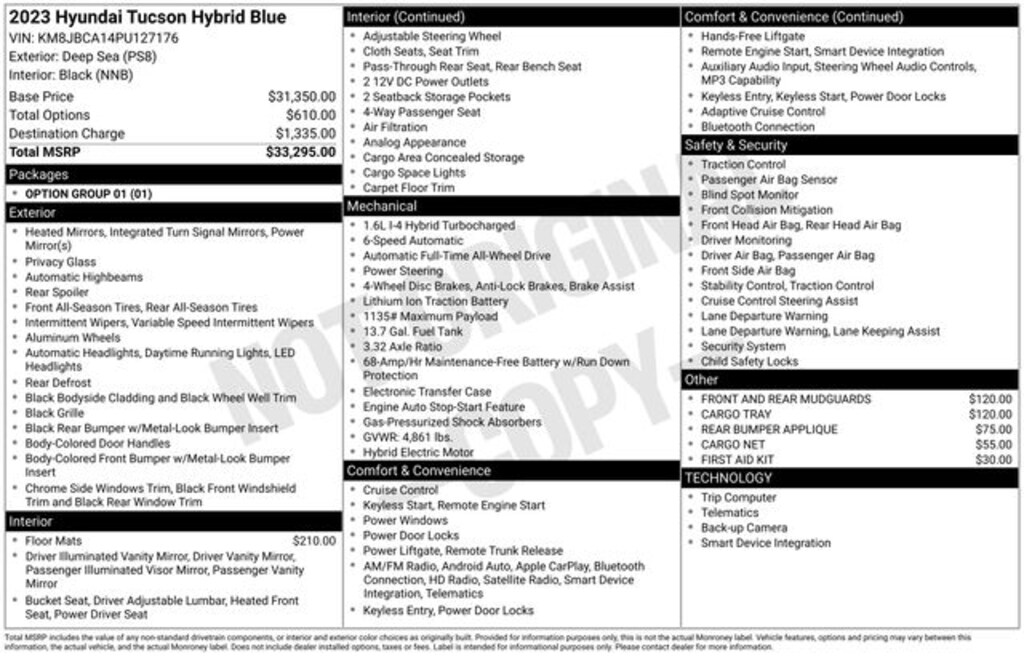 Certified. 2023 Deep Sea 4D Sport Utility Hyundai Tucson Hybrid Blue I4 AWD Option Group 01.