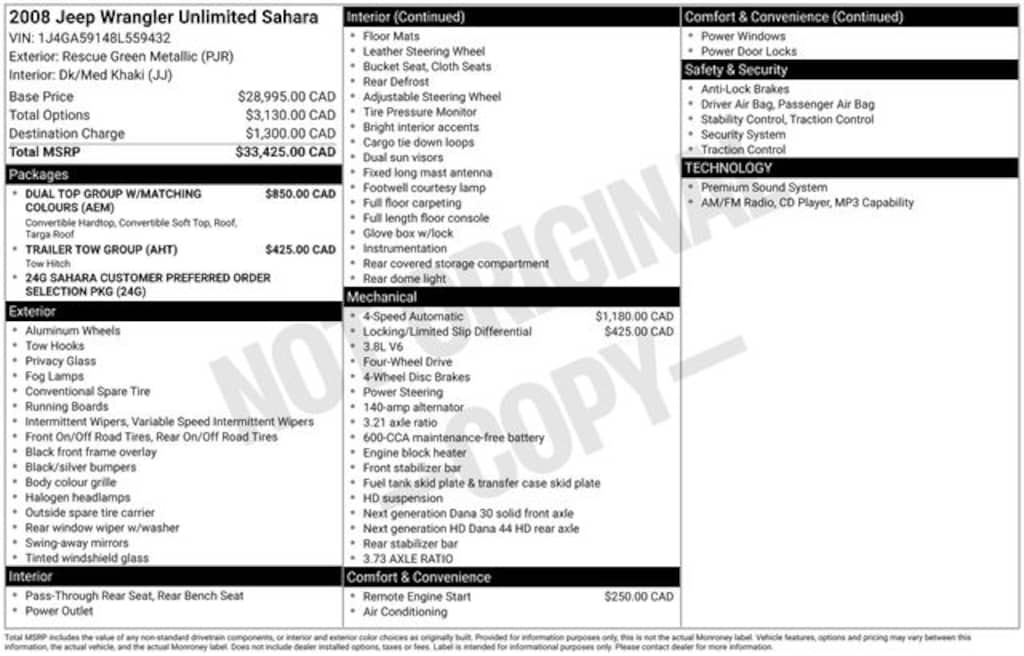 2008 Pjr 4D Sport Utility Jeep Wrangler Unlimited Sahara 3.8L V6 SMPI 4WD