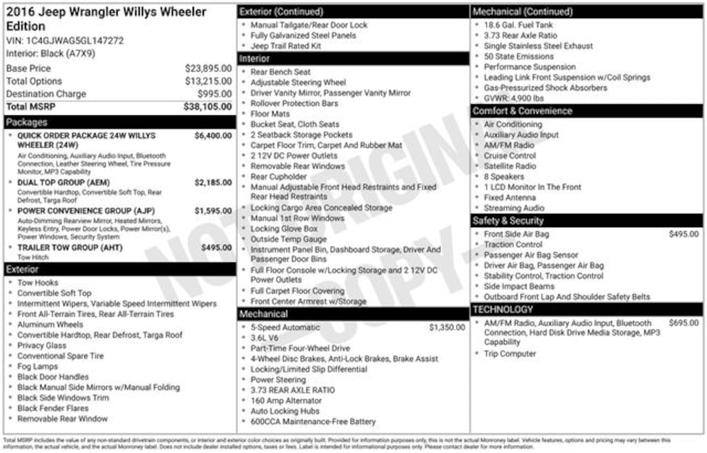 - Wheels: 17" x 7.5" High Gloss Black Willys
