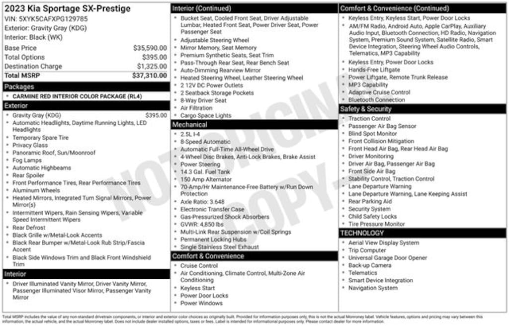 2023 Gravity Gray 4D Sport Utility Kia Sportage SX-Prestige I4 AWD Carmine Red Interior Color Package, Navigation System.