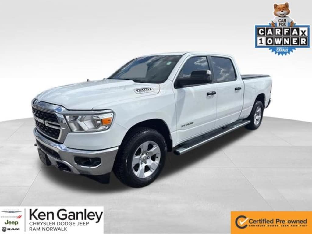 Certified. 2023 Bright White Clearcoat 4D Crew Cab Ram 1500 Big Horn/Lone Star HEMI 5.7L V8 Multi Displacement VVT eTorque 4WD 1500 Big Horn/Lone Star, 4D Crew Cab, HEMI 5.7L V8 Multi Displacement VVT eTorque, 8-Speed Automatic, 4WD, Bright White Clearcoat, Black Cloth, 2nd Row In Floor Storage Bins, 4G LTE Wi-Fi Hot Spot, 8.4" Touchscreen Display, Apple CarPlay, Auto-Dimming Exterior Driver Mirror, Auto-Dimming Rear-View Mirror, Big Horn Level 1 Equipment Group, Black Exterior Mirrors, Black Premium Power Mirrors, Bluetooth Handsfree Phone & Audio, Class IV Receiver Hitch, Connectivity - US/Canada, Convex Wide-Angle Exterior Mirror Insert, Electric Shift-On-Demand Transfer Case, Exterior Mirrors Courtesy Lamps, Exterior Mirrors w/Heating Element, Exterior Mirrors w/Supplemental Signals, For Details, Visit DriveUconnect.com, For More Info, Call 800-643-2112, Front Fog Lamps, Glove Box Lamp, Google Android Auto, GPS Antenna Input, Heated Front Seats, Heated Steering Wheel, Integrated Center Stack Radio, Lone Star Badge, Passenger Sun Visor w/Illuminated Mirror, Power-Folding Mirrors, Protection Group, Quick Order Package 27R Lone Star (Regional), Radio: Uconnect 5 W w/8.4" Display, Rear Dome w/On/Off Switch Lamp, Rear Power Sliding Window, Rear Window Defroster, SiriusXM Satellite Radio, Tow Hooks, USB Host Flip.