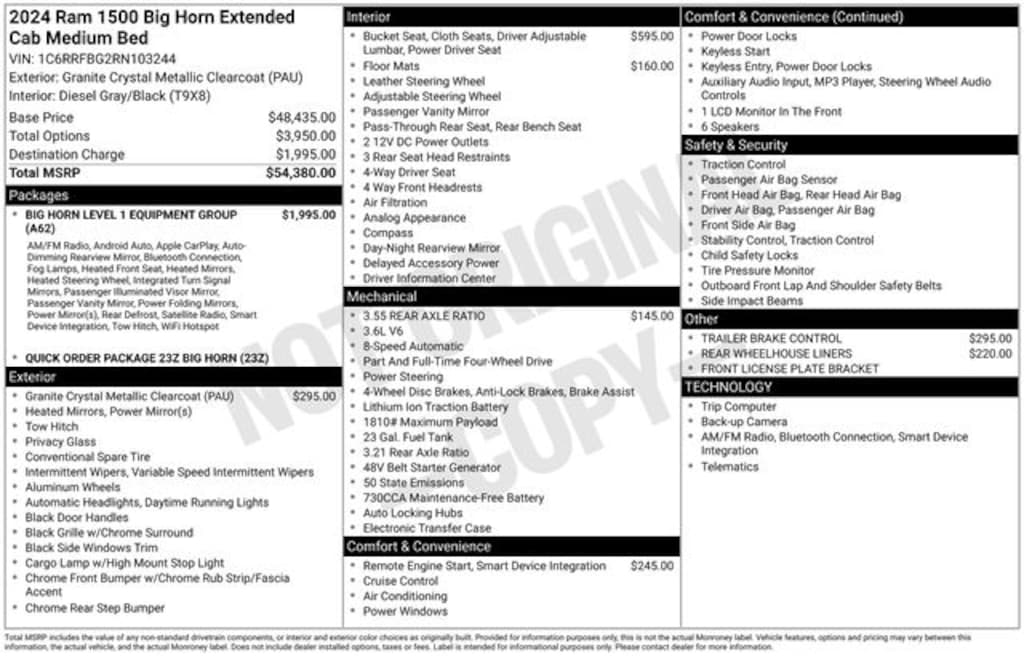 2024 Granite Crystal Metallic Clearcoat 4D Quad Cab Ram 1500 Big Horn/Lone Star 3.6L V6 24V VVT 4WD 1500 Big Horn/Lone Star, 4D Quad Cab, 3.6L V6 24V VVT, 8-Speed Automatic, 4WD, Granite Crystal Metallic Clearcoat, Black Cloth.