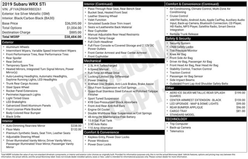 Used 2019 SubaruWRX STi